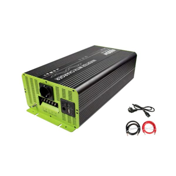 הספק:4000W כניסת 24V זרם מקסימלי 30A מתח ספיגה 14.6V מתח צף 13.8V סוג סוללה:סוללת חומצת עופרת פתוחה ואטומה גודל:480x220x145 משקל המוצר:11.5 ק"ג כולל שלט רחוק וסט כבל סוללה 80 ס"מ אחריות יצרן-24 חודשים